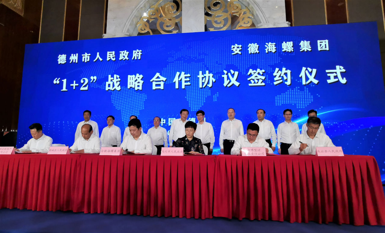 8月28日,海螺集團(tuán)與德州市人民政府戰(zhàn)略合作協(xié)議簽約儀式在山東德州市舉行。德州市委書記李猛,海螺集團(tuán)黨委書記、董事長高登榜出席儀式并致辭。海螺集團(tuán)副董事長,國貿(mào)集團(tuán)黨委書記、董事長范陽參加了簽約儀式。