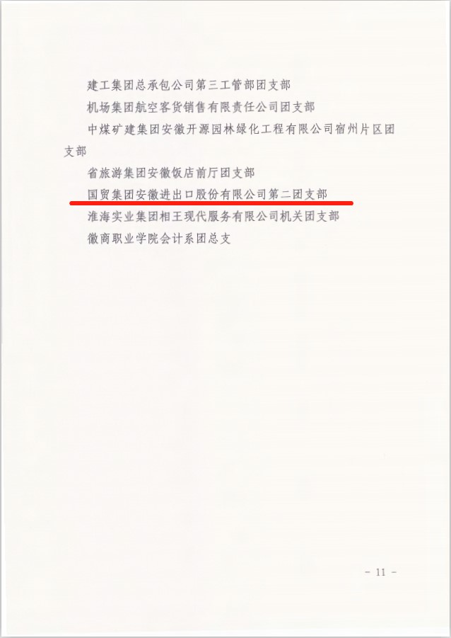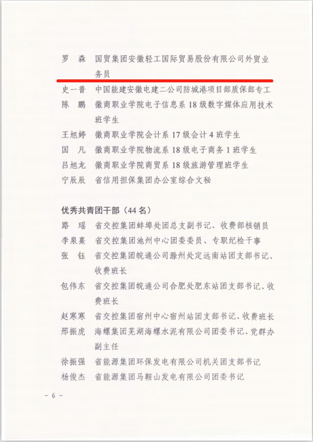在此次表彰中,省進出口公司第二團支部榮獲“五四紅旗團支部”榮譽稱號,安糧集團趙夢晶同志榮獲“優秀共青團干部”榮譽稱號,輕工國際羅森同志榮獲“優秀共青團員”榮譽稱號。