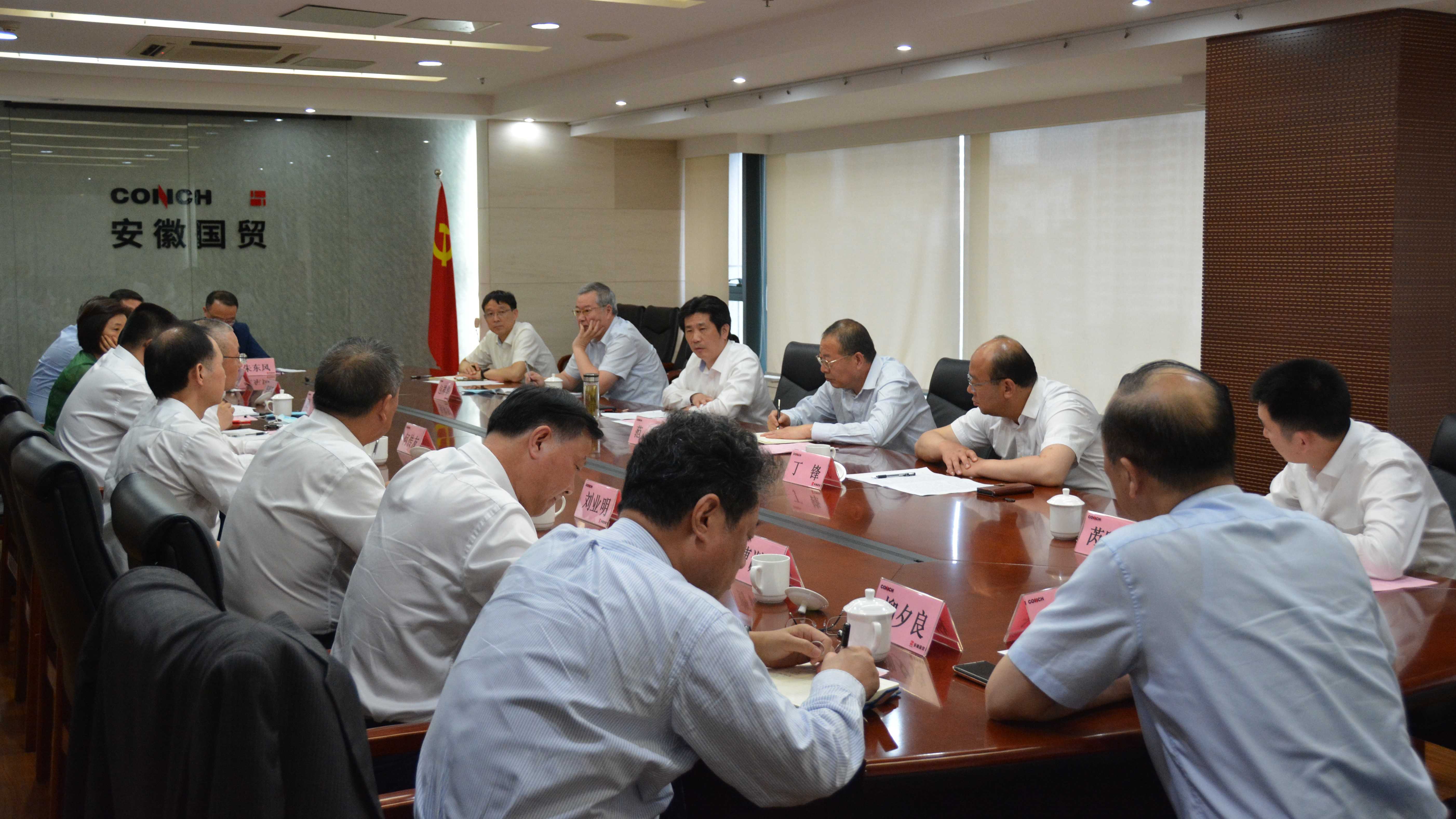 5月27日,集團黨委書記、董事長楊軍到安徽國貿調研指導工作。集團公司黨委委員、總經濟師丁鋒等陪同調研。