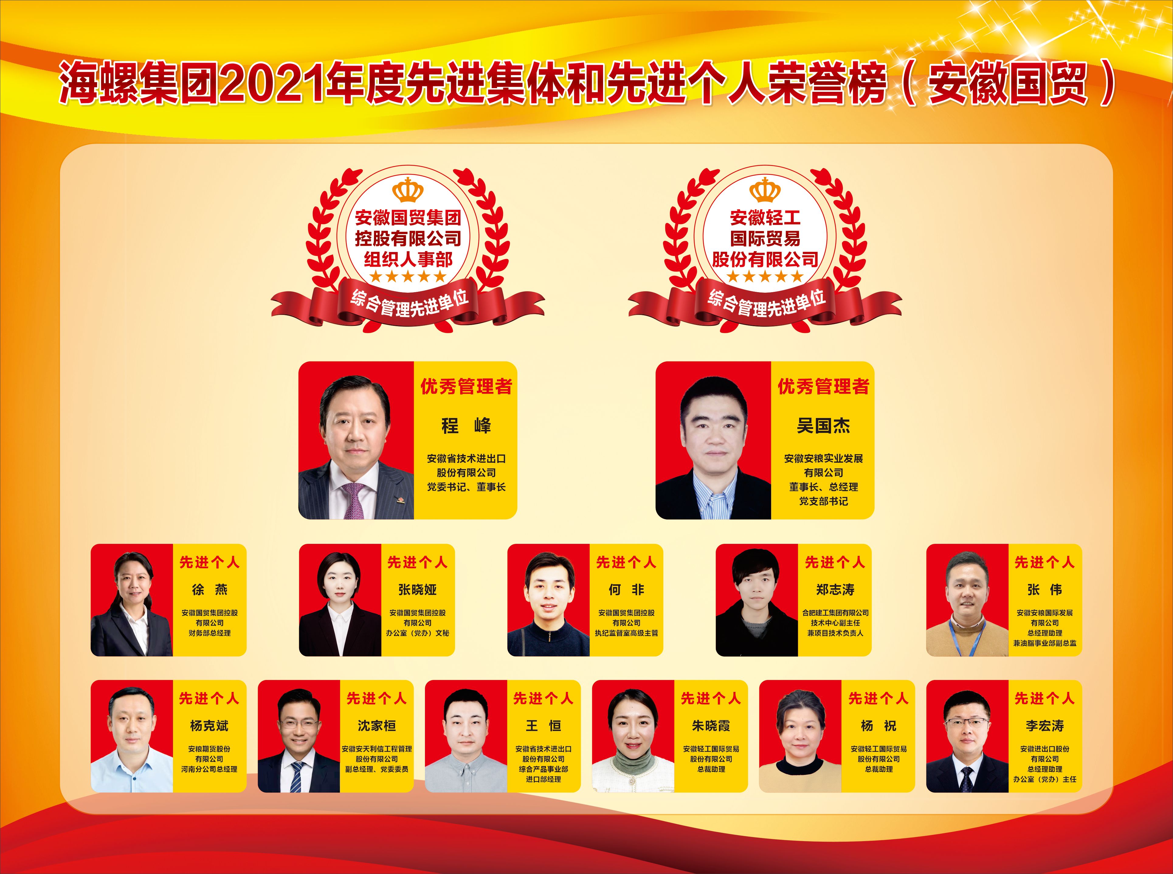 海螺集團2021年度先進集體和先進個人榮譽榜(安徽國貿)