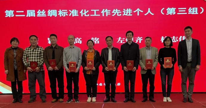 3月25至26日,第三屆全國絲綢標準化技術委員會成立大會暨標準審定會在杭州召開,國貿集團所屬天彩絲綢公司繼續當選第三屆全國絲綢標委會委員單位,天彩絲綢副總經理張穎當選標委會委員,并榮獲第二屆全國絲綢標準化工作先進個人榮譽稱號。