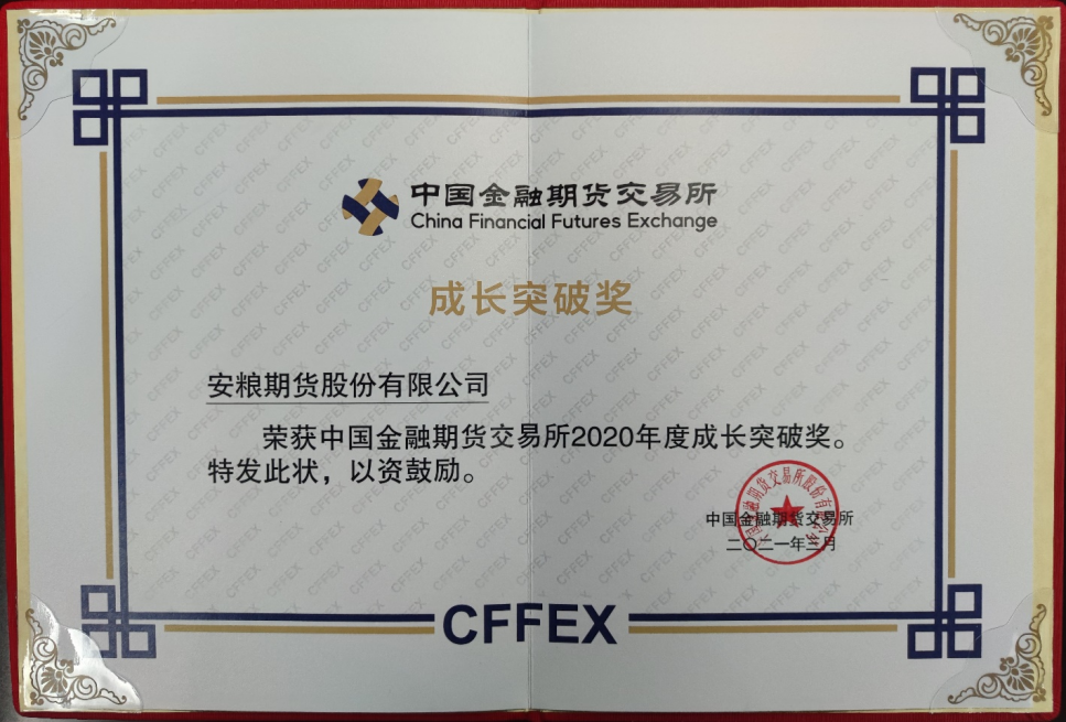 近日,中國金融期貨交易所公布了2020年度優秀會員名單,國貿集團所屬安糧集團安糧期貨公司在此次評選中榮獲“成長突破獎”。