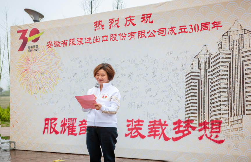 3月19日下午,安徽省服裝進出口股份有限公司在肥西官亭林海生態公園開展30周年司慶毅行活動。海螺集團副董事長,國貿集團黨委書記、董事長范陽等受邀參加活動。